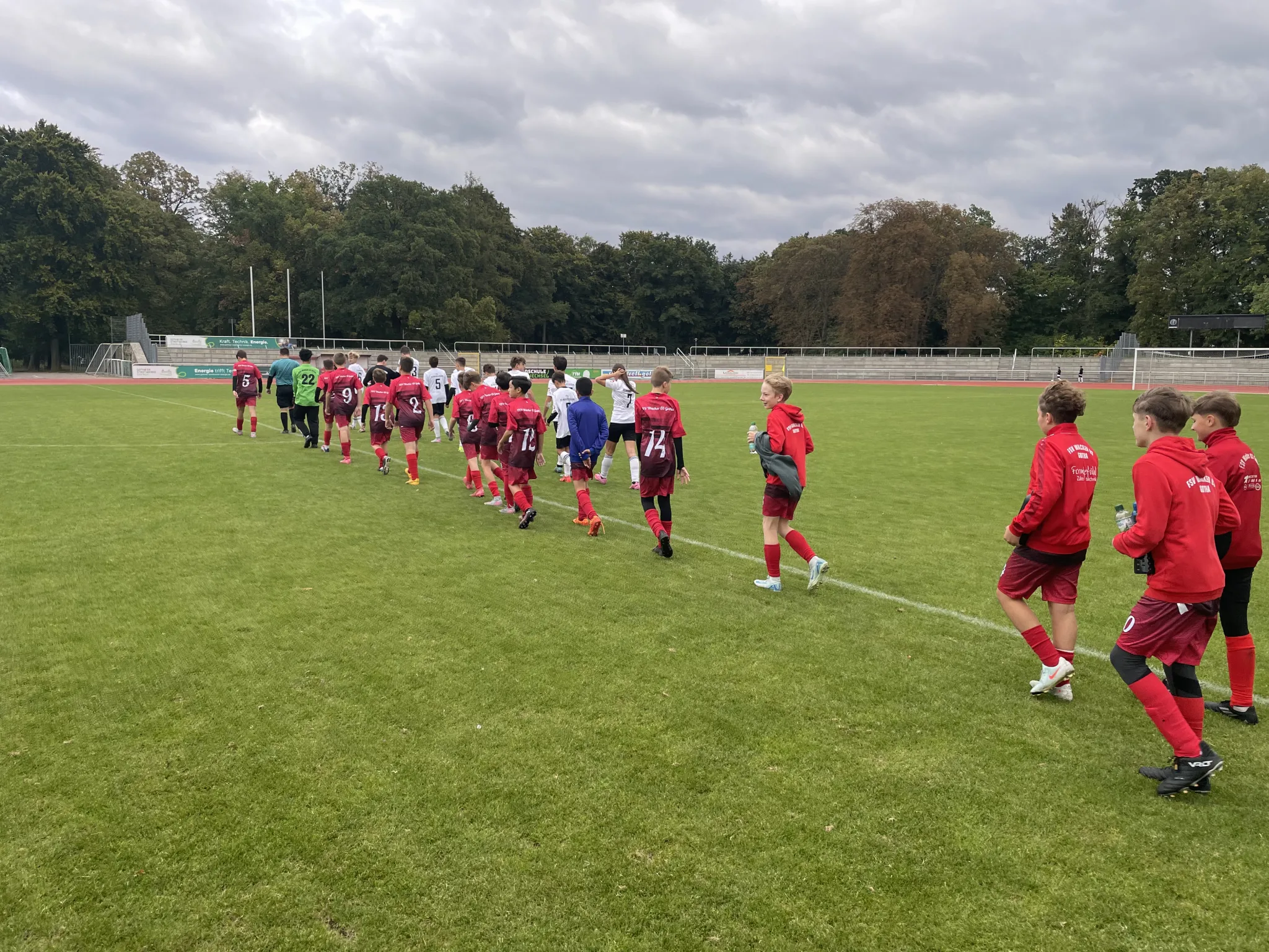 Auf dem heiligen Rasen des Volksparkstadions empfing die C-Jugend von Wacker Gotha den Tabellenzweiten aus Reinhardsbrunn. Laut Tabellenstand ging die Favoritenrollen ganz klar an den Gast, doch da diese offensichtlich ersatzgeschwächt antraten, wurden die Rollen getauscht. Wacker von Anfang an die tonangebende Mannschaft und erspielte sich ein Übergewicht. Beide Mannschaften brauchten die ersten 10 Minuten, um sich an die Größe des Platzes zu gewöhnen. Ab da fing Wacker an den Gast in seine Hälfte zu drängen. Leider wurden viele Angriffe zu ungenau zu Ende gespielt, sodass eine richtige Großchance in der ersten Halbzeit noch nicht rausspringen sollte. Artur R. und Magnus Z. schlossen zu überhastet ab, sodass der Torhüter den Ball ohne Probleme halten konnte. Auch eine scharf getretene Ecke flog an Freund und Feind vorbei und fand so keinen Abnehmer. Auf der anderen Seite war Reinhardsbrunn auch einmal gefährlich vor dem Tor. Auch hier war es ein Eckball,der für Gefahr sorgte. So ging es mit 0:0 in die Pause. In allen Belangen war Wacker überlegen, ob Zweikämpfe, Ballbesitz oder Torchancen, nur ein Tor sollte nicht herausspringen. Auch nach der Halbzeit veränderte sich das Bild nicht. Wacker war weiterhin Feldüberlegen, erspielte sich jedoch bessere Torchancen. Doch am heutigen Tag war der gegnerische Torwart einfach nicht zu überwinden. Bis auf ein einziges Mal. Hier schloss Magnus Z. mit links ab und der Ball flog über den Torwart hinweg (und laut Spieler auch über die Torlinie), dort griff der Torwart beherzt zu und der Schiedsrichter wertete die Szene nicht als Tor. Sehr ärgerlich, denn ein Tor wäre mehr als verdient gewesen. Den schönsten Angriff des Spiels entschärfte der Torhüter ebenfalls mit einer starken Parade. Magnus Z. steckte für den eingewechselten Kristian O. durch, welcher die rechte obere Ecke anvisierte, doch am Torwart scheiterte. Auch die Distanzschüsse von Janis W. und Pepe K. wurden durch den Torwart übers Tor gelenkt. Wacker warf nochmal alles nach vorne und brachte mit Xerxes A. und Paul R. frische Kräfte, doch der Ball wollte an dem Tag einfach nicht ins Tor. So musste sich Wacker mit dem Punkt begnügen und ging entsprechend enttäuscht vom Platz. Auf dem Papier liest sich zwar ein Punkt gegen den Tabellenzweiten gut, doch wäre an dem Tag ein Sieg verdient gewesen. Am Sonntag steht die 1. Pokalrunde an. Hier reist man als Favorit nach Tabarz, welche derzeit Vorletzter sind.