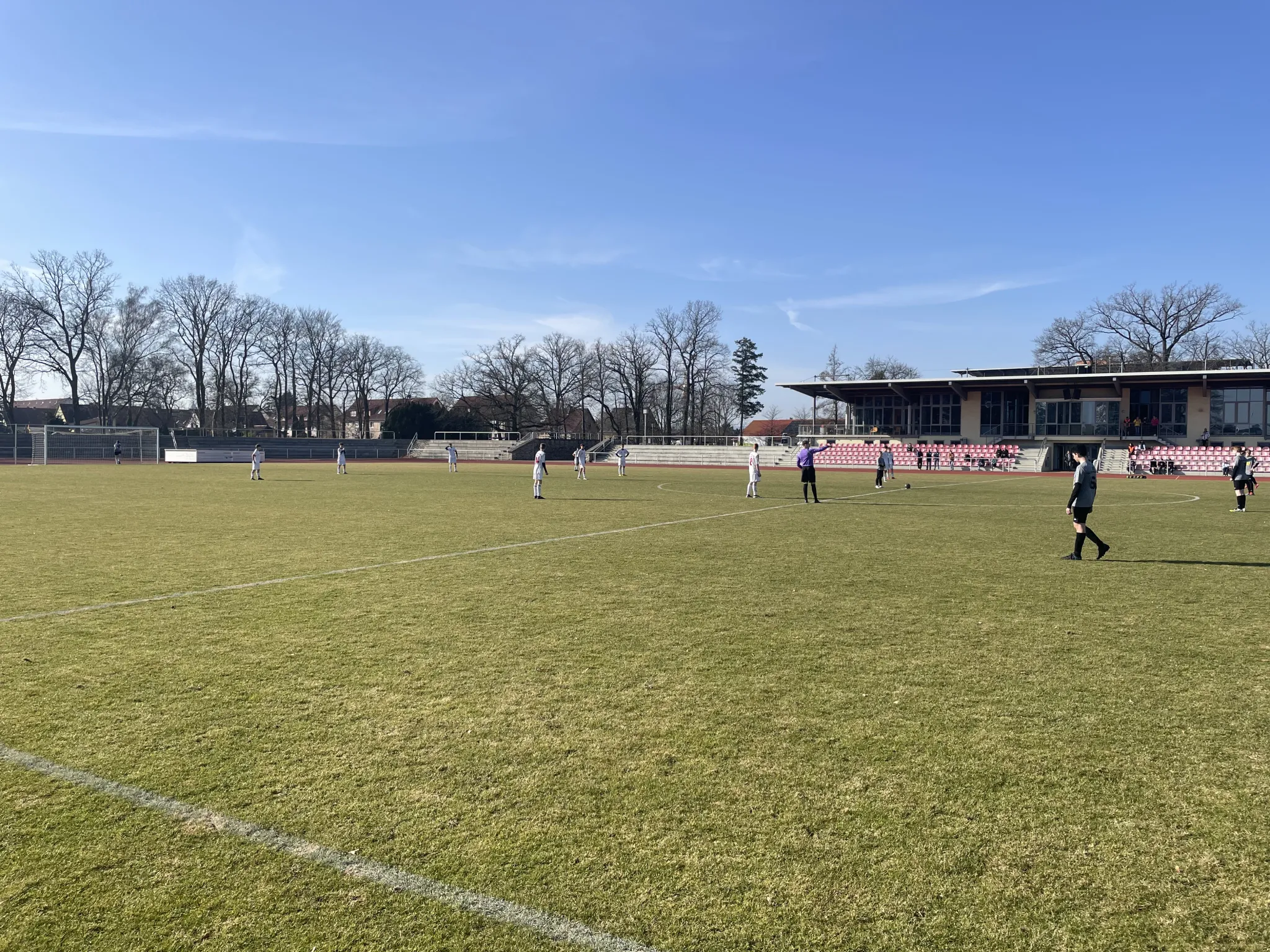 Zum ersten Spiel der Rückrunde empfing der FSV Wacker 03 Gotha bei schönstem Sonnenschein im Volksparkstadion die JFC Nesse-Apfelstädt. Mit 17 Punkten auf Tabellenplatz 7 kam der direkte Tabellennachbar nach Gotha. Mit einem Sieg hätte Wacker an Apfelstädt vorbeiziehen können. Dementsprechend motiviert ging die Heimmannschaft in die Partie. Von Anfang an bestimmten sie das Spielgeschehen. Mit schönen Spielzügen schnürte Wacker Apfelstädt in deren Hälfte ein. Eine schöne Kombination über die rechte Seite sorgte für die erste Torchance. Über Pepe K. und Artur R. wurde Leon B. auf die Reise geschickt, dieser schoss jedoch am Tor vorbei. In der 7. Minute stand Janis W. nach Pass von Magnus Z. goldrichtig. Dieser schloss einen Distanzschuss aus ca. 20m flach in die lange Ecke ab und sorgte so für die verdiente Führung. Wacker hörte nicht auf und spielte weiter geduldig nach vorne. Immer wieder wurde der Ball über außen nach vorne getragen und gefährliche Situationen kreiert. Leon B. machte ein klasse Spiel im Sturm und gab keinen Ball auf. Als Magnus Z. über links durch war, wäre es vielleicht besser gewesen den Ball in die Mitte, auf den mitlaufenden Leon B. zu passen, als selbst aus spitzem Winkel abzuschließen. Sein Schuss konnte durch den gegnerischen Torwart pariert werden. Apfelstädt operierte meist mit langen Bällen, welche zum größten Teil die heimische Abwehr vor keine Probleme stellte. Jedoch war es einer dieser langen Bälle, welcher kurz vor der Pause zum Ausgleich führte. Eine unglückliche Kopfabwehr landete direkt beim Gegner, der entschlossen abschloss und zum Ausgleich traf. So ging es mit 1:1 in die Kabinen. Zur Halbzeit brachte Wacker mit Yazen A. für Leon B. und Kristian O. für Artur R. frische Beine. In der 42. Spielminute wertete der Schiedsrichter ein klares Foul an unserem Innenverteidiger Luca H. nicht, so stand der Stürmer allein vor unserem Torwart Stuart H. und konnte diesen zur 1:2 Führung überwinden. Etwas geschockt von der Entscheidung verlor Wacker den Spielfluss. Es wurde hektisch und der bis dahin klare Spielaufbau war nicht mehr zu sehen. Man drückte zwar Apfelstädt, wie bereits in der ersten Halbzeit, in ihre Hälfte, doch vorerst sollten keine klare Torchance dabei rausspringen. Die beste hatte noch Magnus Z. auf dem Fuß, doch die Latte stand dem Ausgleich im Weg. Es wurde nochmal reagiert und mit Jim vB. und Jamie A. für Magnus Z. und Pepe K. kam noch mehr Offensive ins Spiel. Wacker rannte weiter an, doch der Ausgleich wollte nicht fallen. Einen klasse Schuss von Karl W. kratzte der Apfelstädter Torwart aus der unteren Ecke. Hier hatten die Trainer bereits den Torschrei auf den Lippen. 5 Minuten vor dem Ende warf Wacker nochmal alles nach vorne und brachte mit Tommy P. für Luca H. noch einen Stürmer. Und der Ausgleich sollte tatsächlich fallen. Mit dem Schlusspfiff nahm sich Jamie A. ein Herz und netzte volley ein. Die Vorlage kam von Bruno S., der einen Schuss von Hugo K. ideal für den Torschützen auflegte. Dementsprechend war der Jubel der Heimmannschaft riesig. Ein mehr als verdienter Punkt, an den man immer geglaubt hat. Die Jungs von Wacker Gotha haben große Moral bewiesen und so einen Fehlstart in die Rückrunde verhindert. Hut ab von den Trainern an die Mannschaft zu dieser Leistung!