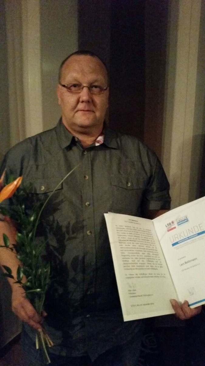 Unser Verein gratuliert Lars hiermit recht herzlich und freut sich mit ihm über die hohe Auszeichnung.