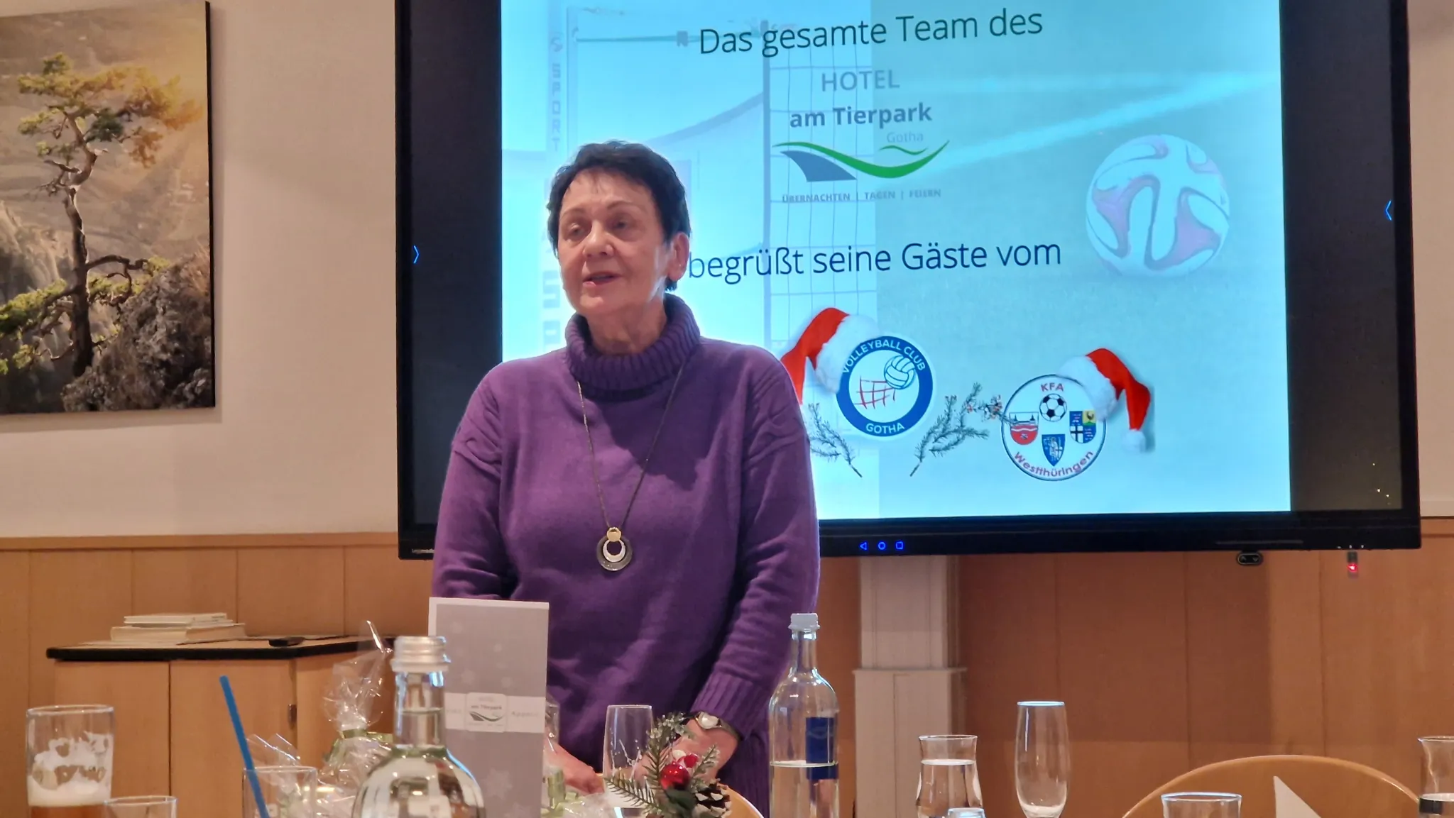 Die Gäste des KFA-Westthüringen, des VC Gotha und unseres FSV Wacker 03 durften nicht nur eine herzliche Begrüßung durch Herrn Lutz erfahren, sondern im Laufe des Abends auch gute Gespräche sowie lustige Darbietungen des Kabarettisten Ulf Annel von der Arche Erfurt mit nach Hause nehmen. Unser Verein hatte in diesem Jahr die Nachwuchstrainer als Dankeschön für ihre aufopferungsvolle Arbeit mit unseren Kindern und Jugendlichen mit der Teilnahme belohnt und dass es sich für sie gelohnt hatte, merkten sie spätestens beim Abendessen. Wurde in den vergangenen Jahren immer ein umfangreiches und leckeres Mehrgängemenü von der Gastgeberin geboten, verzauberte man uns diesmal mit einem mediterranen Buffet. Dass es allen ausgezeichnet gemundet hat ist selbstverständlich aber auch optisch war die Creation des Buffets ein Augenschmaus.
