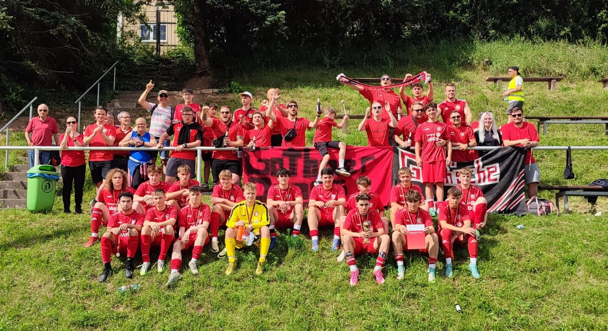Was bleibt ist dennoch ein denkwürdiger Finaltag, den die Jungs von den Trainern Lutz Böttner und Lukas Kehr so schnell nicht vergessen werden. Bereits am frühen Sonntagmorgen traf man sich zum gemeinsamen Brunch im Klaus-Törpe-Sportpark. Nachdem es anschließend zum Lidl-Parkplatz ging, erwarteten schon über 25 Fans die junge Truppe. In einer gemeinsamen Busfahrt, bestehend aus Mannschaft und Supportern, wurde die Mannschaft schon auf dem Hinweg kräftig eingeheizt. Kaum auf dem Platz, wurde das Team um Capitano Julius Leopold Schütte unermüdlich angefeuert. Dass die Mannschaft dieses wahrgenommen hat, war sichtlich zu beobachten. Auch wenn an diesem Tag vieles nicht gelang, so gab man sich nie auf und kämpfte trotz des hohen Rückstands bis zum Schlusspfiff. Noch weit nach Spielende sangen die Fans, bestehend überwiegend aus 1. und 2. Männermannschaft, ihre zum Teil eigens komponierten Fangesänge und jubelten unseren A-Junioren zu. An der Trommel übte sich dabei der gerade einmal 11-jährige Elias Abendroth, den man sofort anmerkte, dass er das nicht zum ersten Mal gemacht hat, starke Performance!