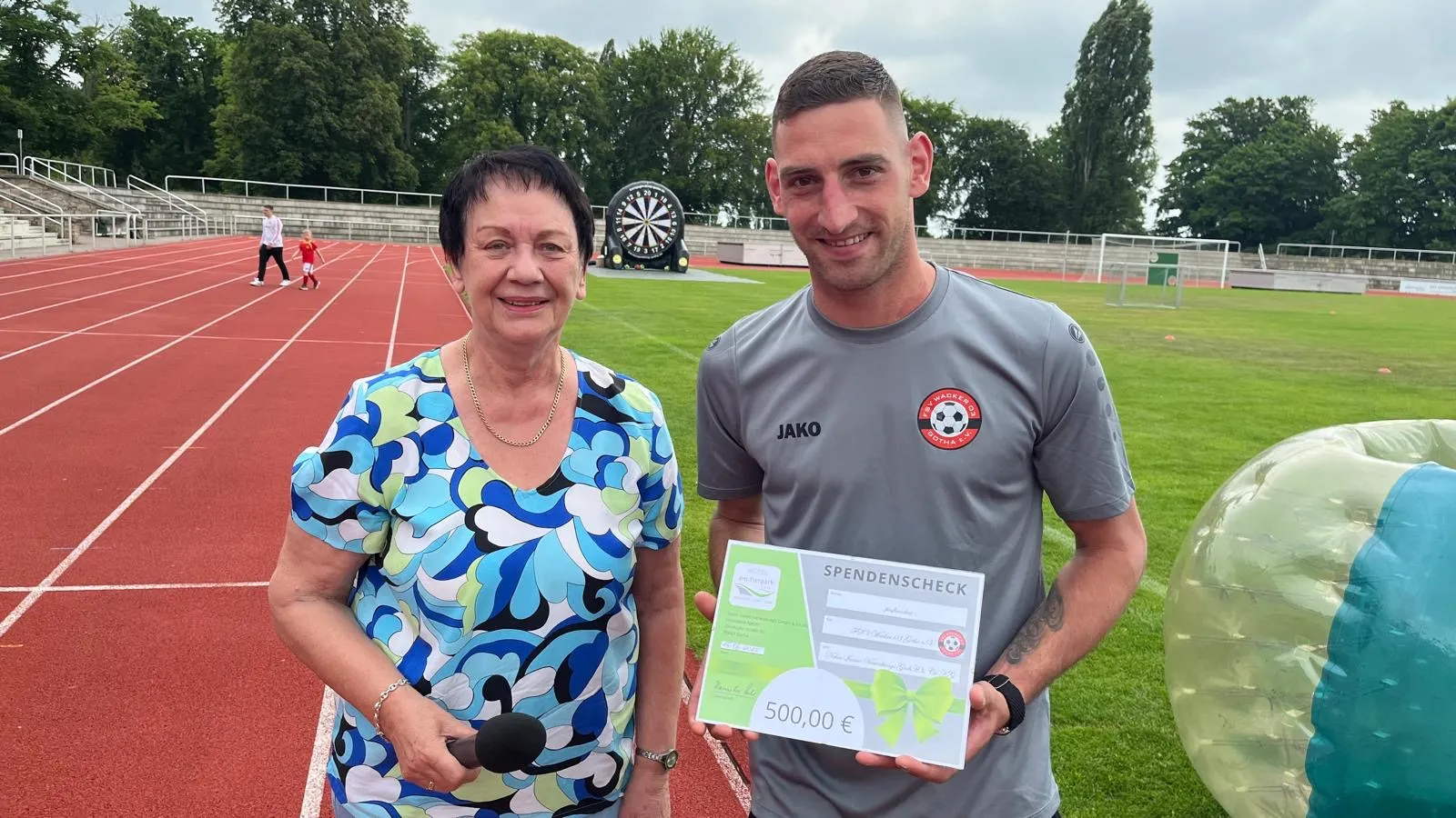 Um 10:15 Uhr eröffnete Stadionsprecher Bernd Vollkenannt mit den Worten „Herzlich Willkommen im schönsten Stadions Deutschlands“ die große Saisonabschlussfeier und übergab das Wort an Präsident Thomas Fiedler. Dieser begrüßte mit Onno Eckert den aktuellen Landrat des Landkreises Gotha sowie mit Frau Hannelore Neher die Geschäftsführerin vom „Hotel am Tierpark Gotha“, welche den FSV seit mittlerweile über 10 Jahren nicht nur finanziell tatkräftig unterstützt. Vielen Dank für euren Besuch im Volkspark-Stadion Gotha!