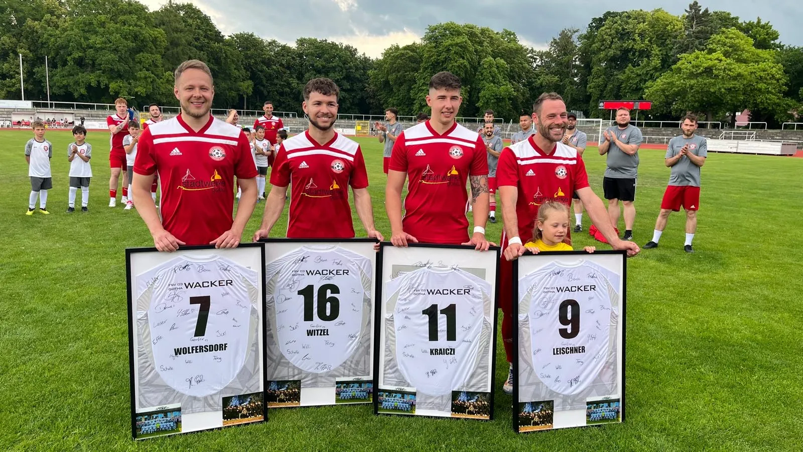 Vor dem Anpfiff war es dann an der Zeit, Abschiede zu verkünden. So bedankte sich Präsident Thomas Fiedler bei Frank Schonert und Jürgen Thara für die langjährige und vor allem sehr gute Vereinsarbeit. Bei der Elf um Trainer Norman Bonsack wurden mit Niklas Witzel, Michel Wolfersdorf, Lucas Kraiczi und David Leischner gleich vier Spieler verabschiedet.